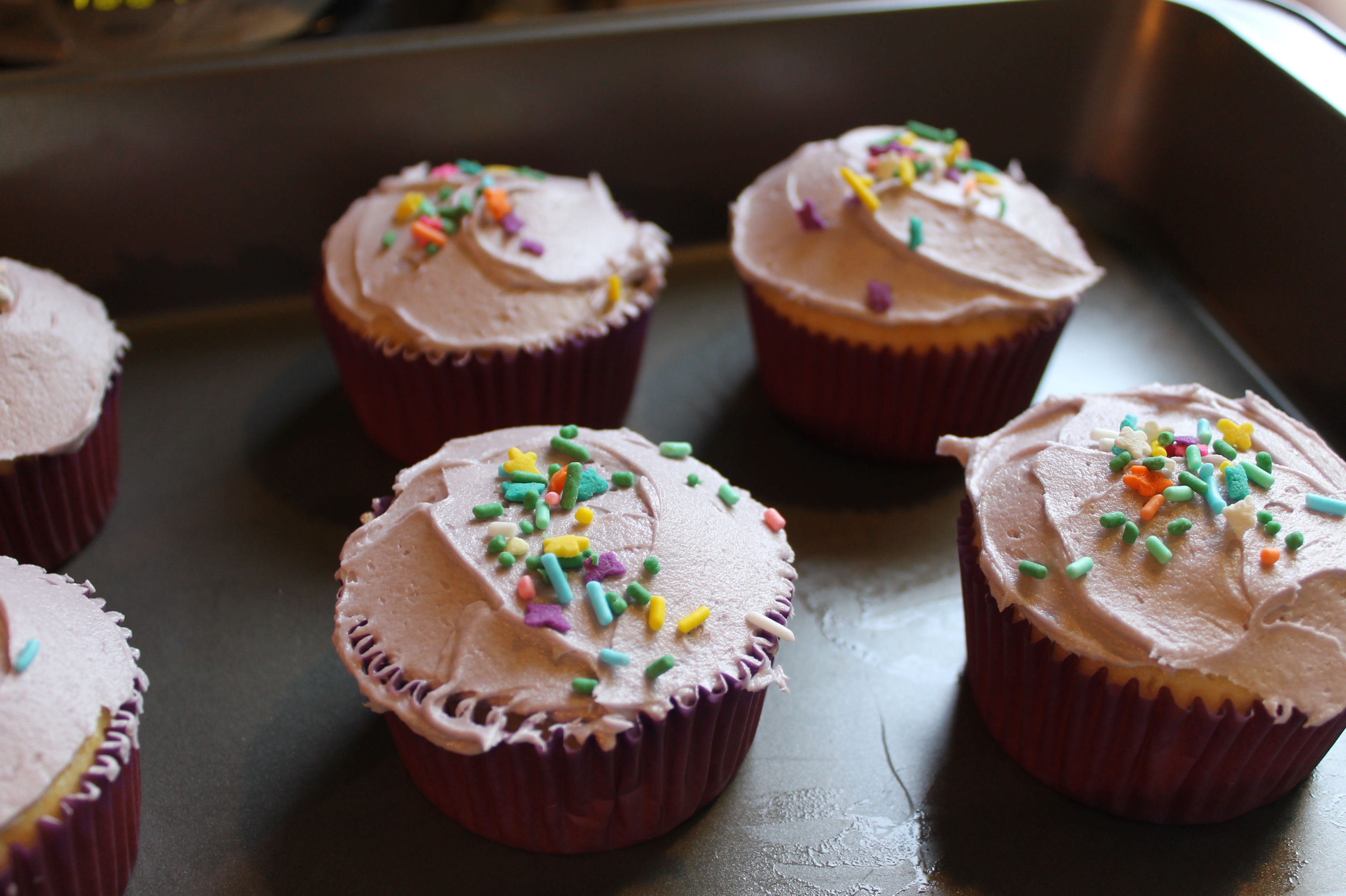 – We celebrated a first birthday yesterday. Baby Bean is walking everywhere, and devoured her very first cupcake. I copped out and used a boxed mix, but whipped up some homemade buttercream icing. Swee was mistress of the sprinkles. It was a lovely day, with that perfect stiff breeze to banish the black flies. We walked over to the lake and went wading. Beansie floated around and splashed. She went to bed tired and happy, and J and I were able to sit outside for a drink.