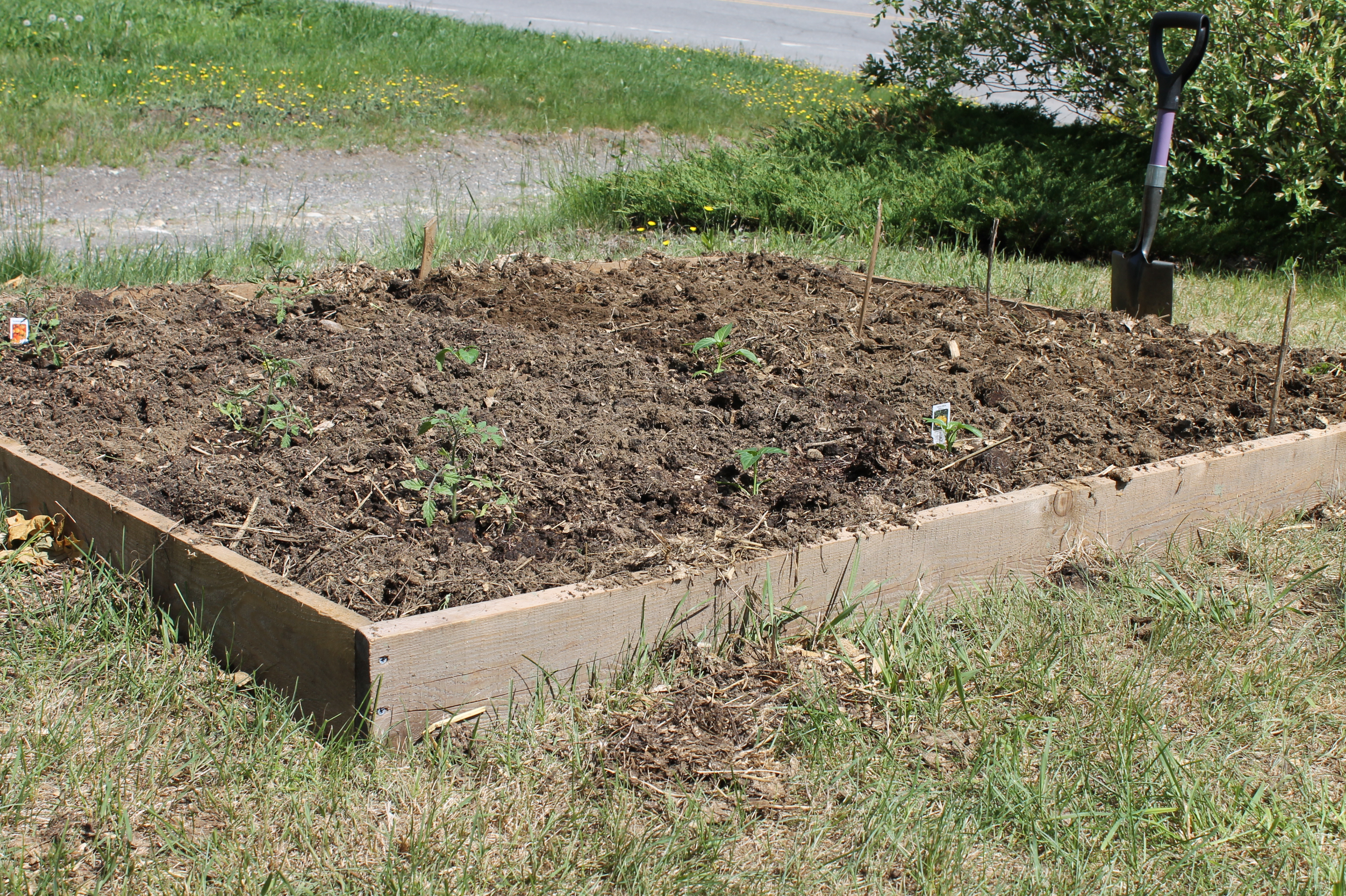 – At the bottom of our driveway is a small antique shop. It had a little sign in the window that it was closed for the season, and I hadn’t seen anyone there until early last week when a lovely petite woman started dragging things out onto the porch. Her name is Barbara and she’s also from Pennsylvania. Oddly enough, she’s from a town not twenty minutes from where I grew up. She and her husband winter down there, and spend the summers here. We’ve talked several times now, and Swee smiles and waves when we see her. I’m looking forward to her shop opening next week, and seeing what treasures she has inside. Barbara has been spending a lot of time sorting out the garden in front of the shop, and yesterday, she filled in the spaces with herbs and tomatoes. I love the way she’s mixed edible and ornamental. She walked me through our own wild space out front (which is dreadfully in need of attention) as there are many plants I’m unfamiliar with, and then sent me back up the drive with some parsley seedlings.