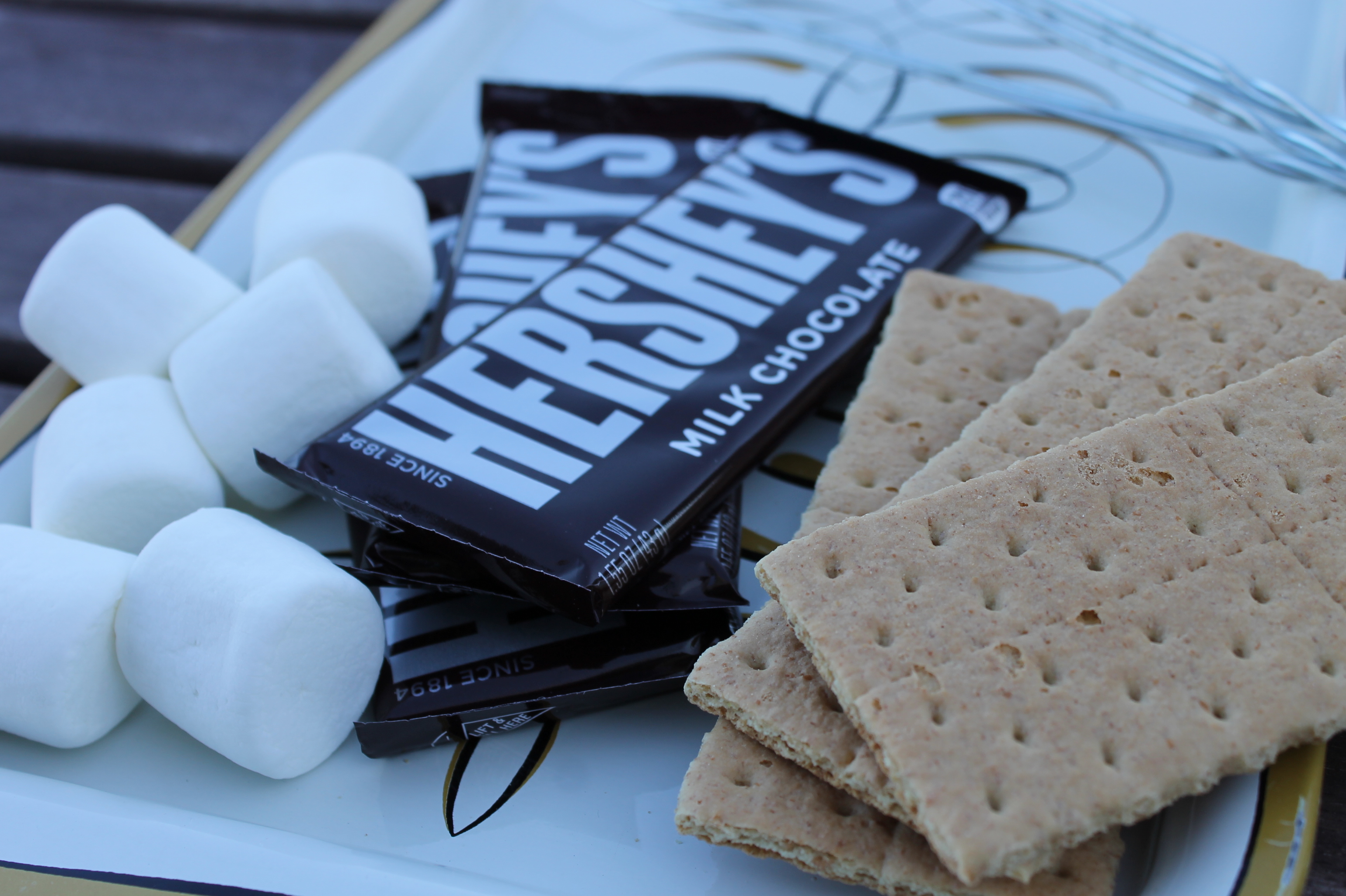 – My mother-in-law is a wonderful gift giver, with a tendency to pick things up in her travels with what at first glance appears to be no rhyme or reason, but in the end makes up a box of little treasures. For their birthdays, along with some other goodies, she sent the girls all the fixings to make s’mores. We’ve roasted marshmallows with Swee before, but never gone whole hog like this. She wasn’t too sure about the total combination, but enjoyed the process. At one point, I realized we had opened more than one chocolate bar, and discovered that she had absconded with the contents of both wrappers, sequestering herself in her playhouse with the spoils.